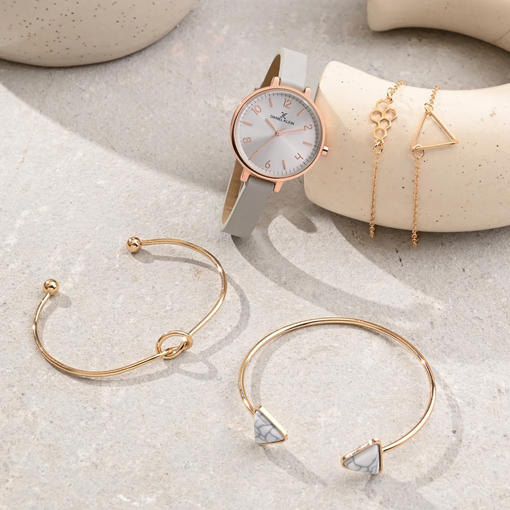 - Rings – Can be minimal or statement.